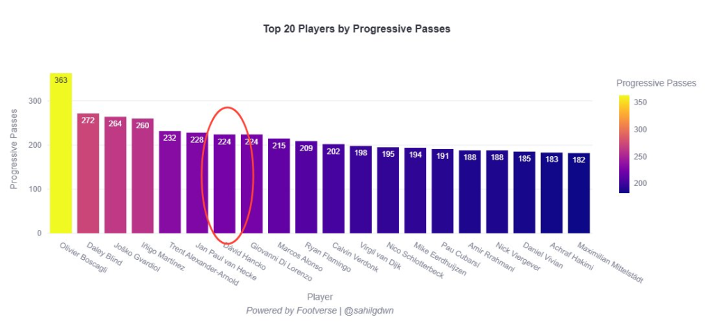 Napriek tomu sa ukazuje, že Hancko má viac kvality než kvantity v obranných zákrokoch – čo je do veľkej miery dané dominanciou Feyenoordu v zápasoch. Vďaka svojmu postaveniu a schopnosti predvídať hru dokáže predísť tomu, aby sa vôbec dostával do množstva osobných súbojov.