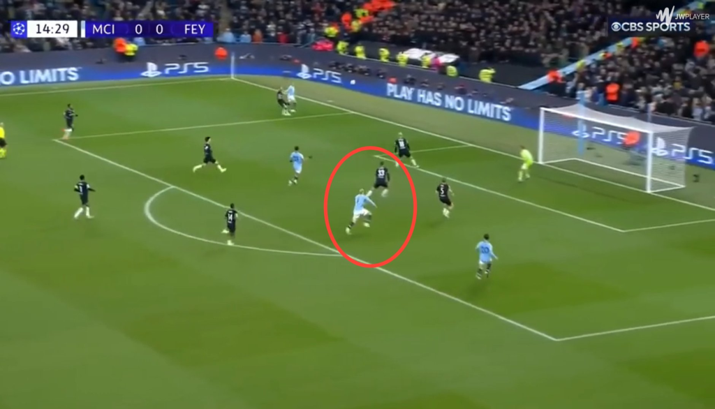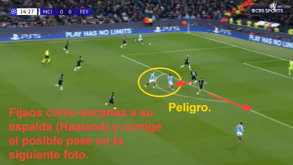 Pri vysokej súperovej presingovej línii, čo bolo dobre vidieť proti Manchesteru City, Hancko nepodlieha panike s loptou pri nohách. Neustále si skenuje okolie a väčšinou si vyberá najlepšie možné riešenie.