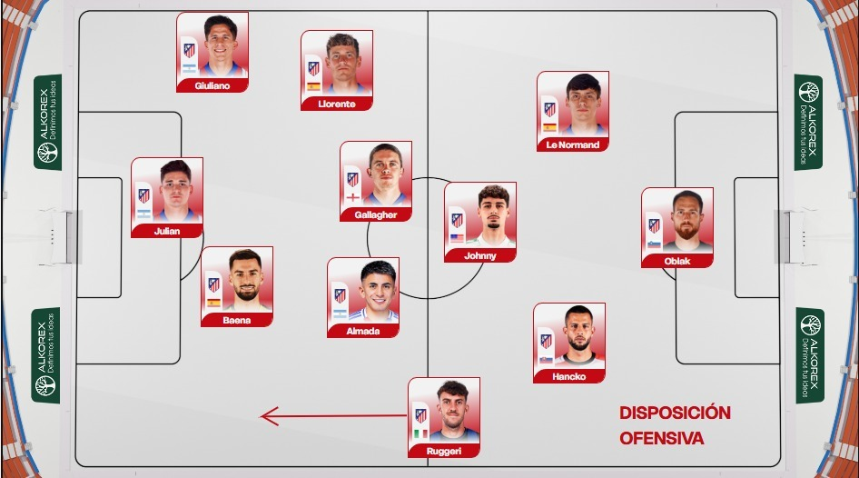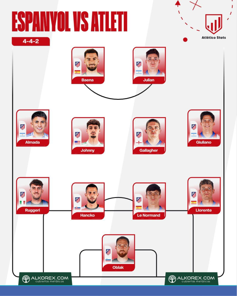 Simeone nastúpil s pravdepodobnou základnou jedenástkou, s výnimkou Barriosa, ktorý sa práve zotavil zo zranenia, a Giméneza.